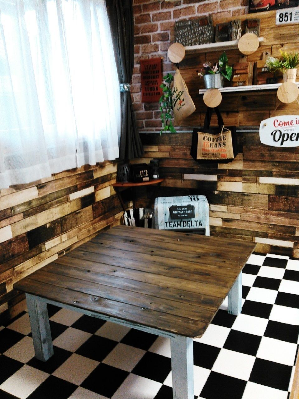 ダサかった机が復活です^^これ、オールシーズン出しっぱでOK^^もう少し寒くなったらこたつ布団をかけて使おうと思います^^