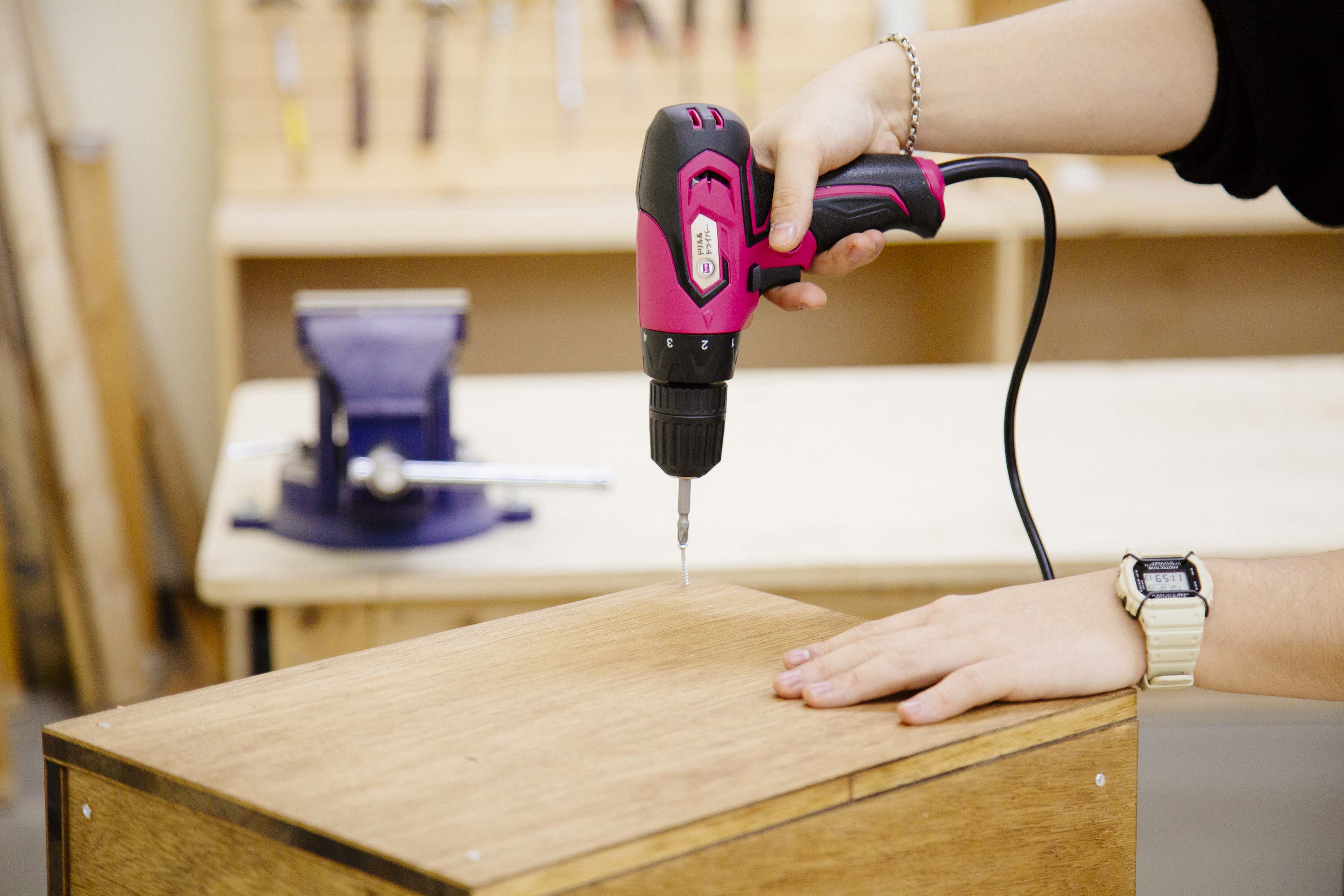 コードをコンセントに差し込めば、すぐに使えるコード式ドリル&ドライバー。安定した電力供給を行えるので、長丁場のDIYでも電源が切れる心配はありません。