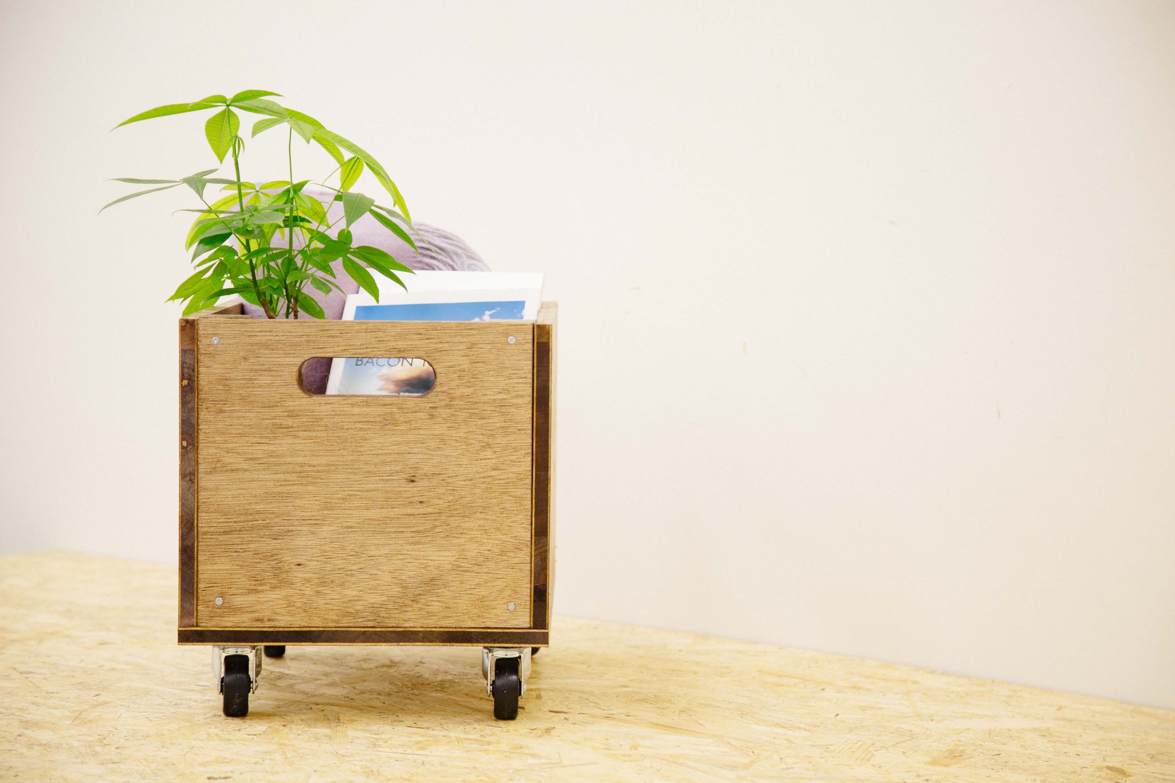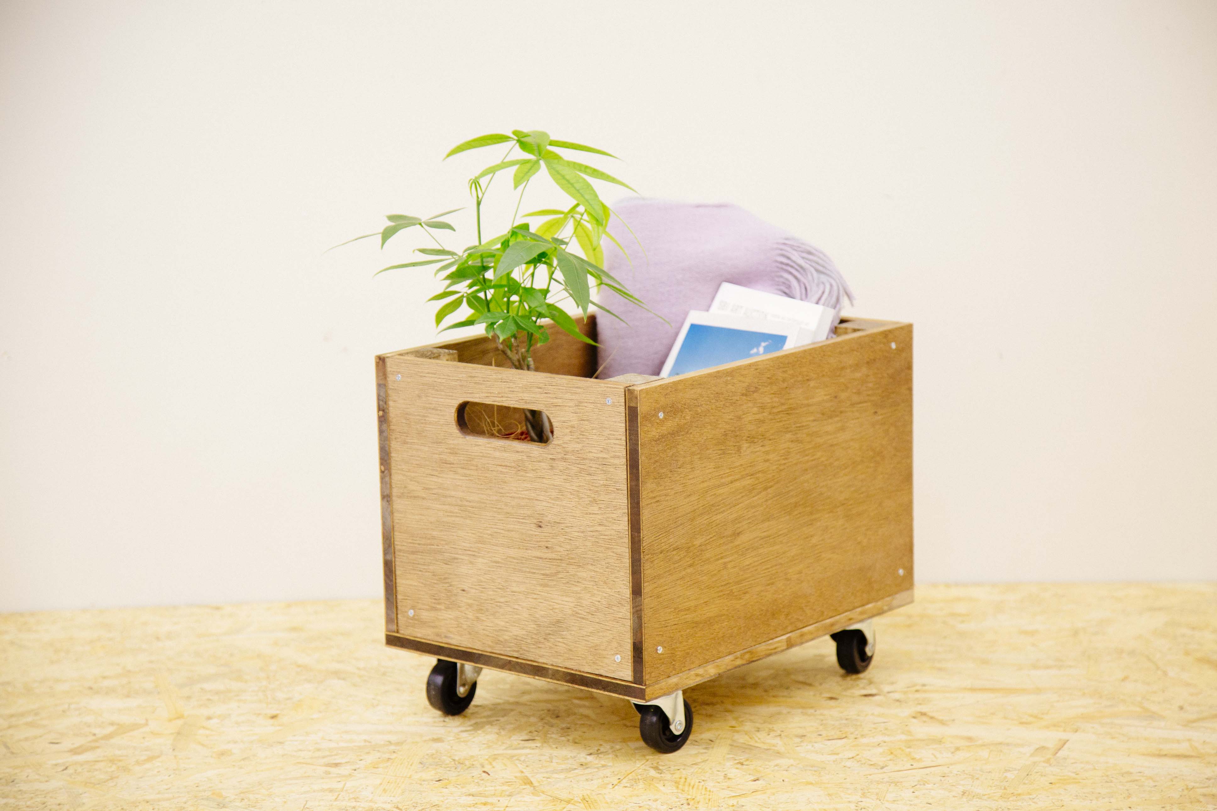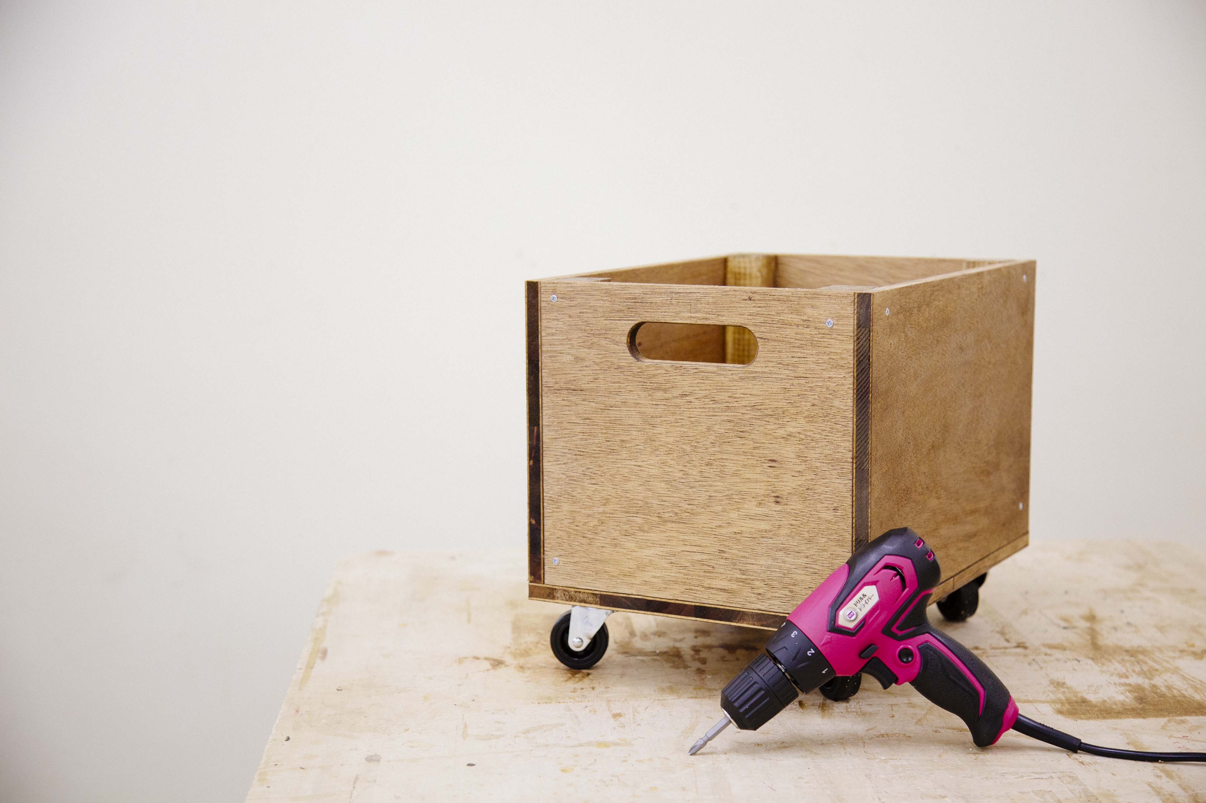 以上で、ウッドボックスの制作が完了しました。シンプルデザインなのでお部屋の雰囲気を選ばず、キャスターが取り付けられているので移動も簡単ですよ。
