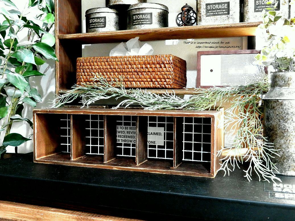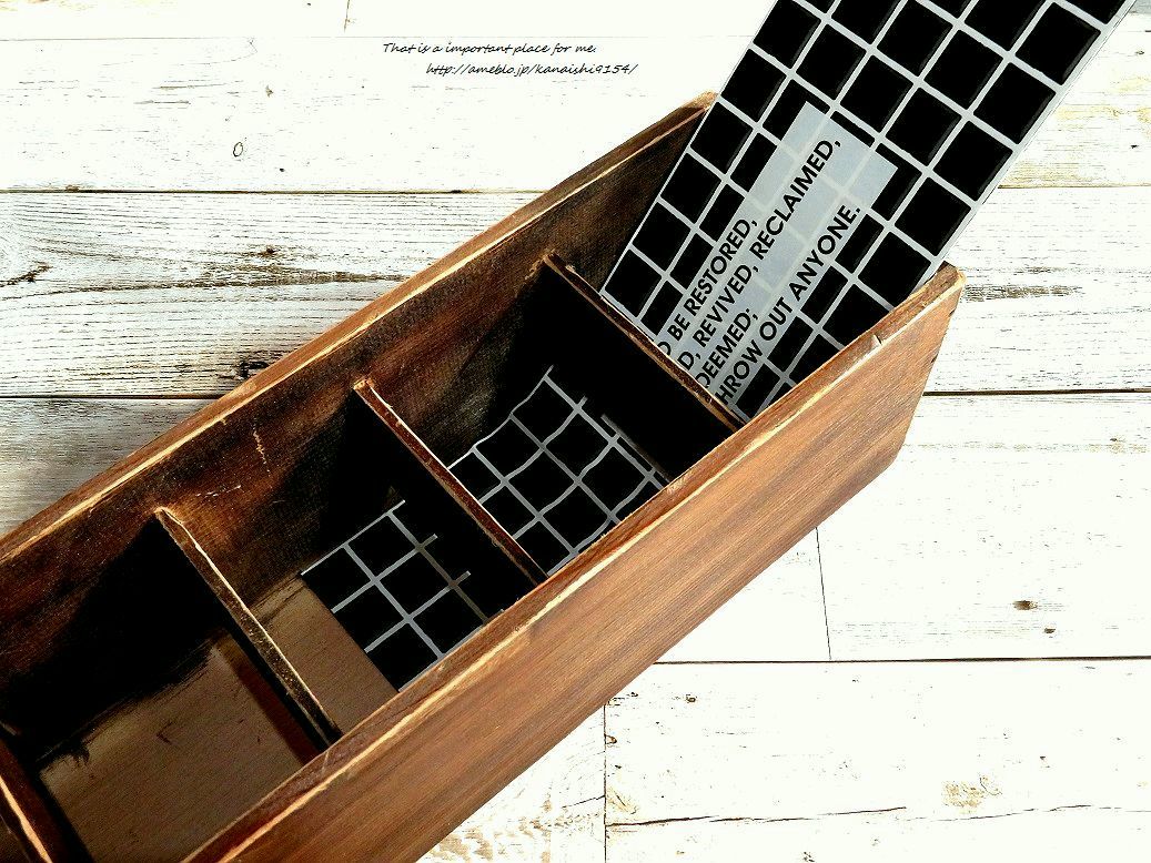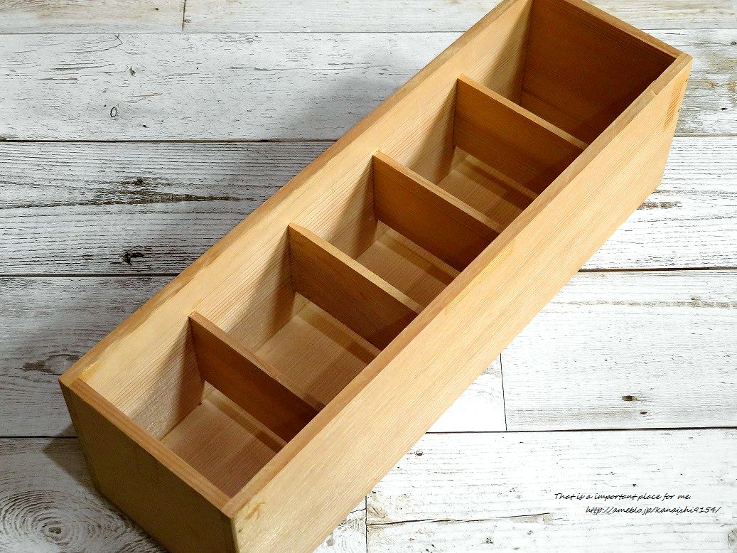 背面を工夫したことで、男前にもナチュラルにも飾れる仕切り付きの木箱になりました。