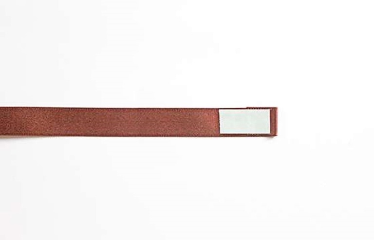 リボンを裏返し、右の端に1cmほど両面テープを貼り、折り返して貼り合わせる。