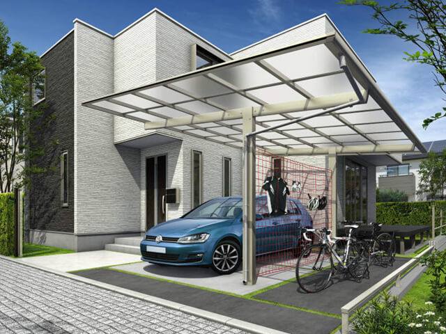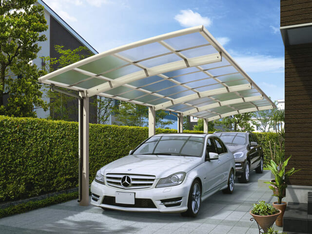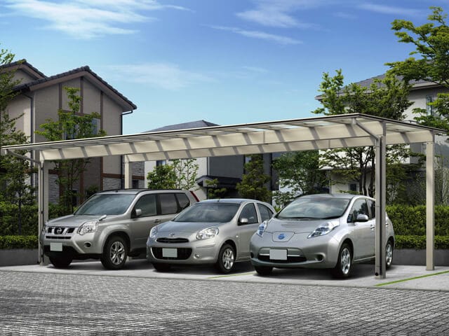 サイズのバリエーションは多くありませんが、真ん中に柱を立てずに3台分の駐車スペースに屋根を取付できる点は魅力です。