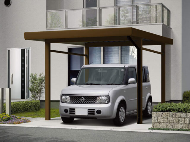 柱が片側によっているので、比較的駐車がしやすいタイプです。コストパフォーマンスに優れ、一番人気の一台用カーポートでもあります。