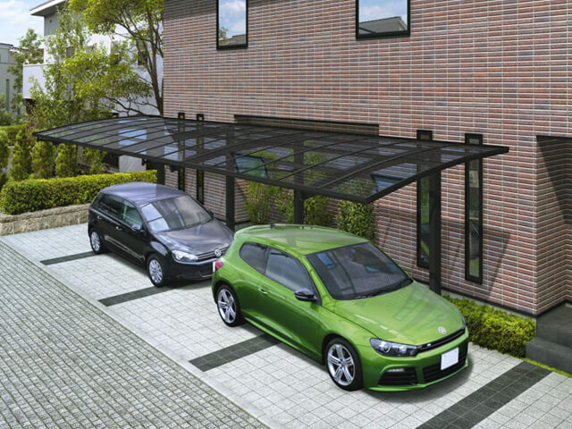 一般的な2台用のカーポートです。コストパフォーマンスに優れ、一番人気の2台用カーポートでもあります。