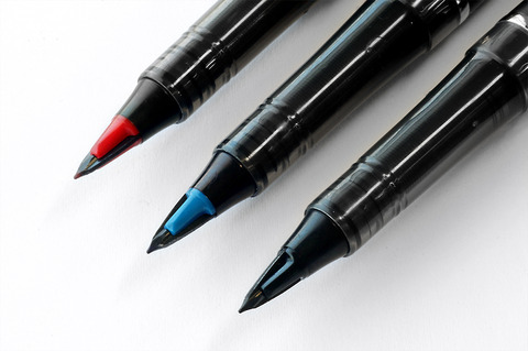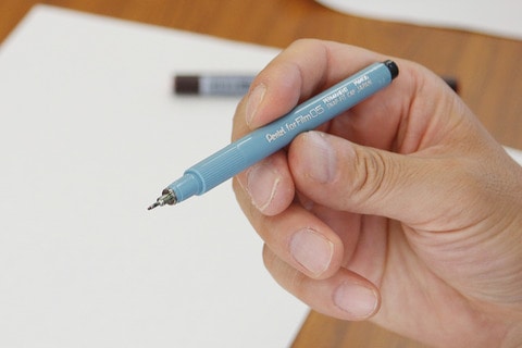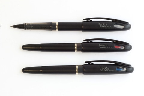 このしなり具合をうまくコントロールすることで、筆跡に強弱を生み出していける。つまり、太い線、細い線を自由に作り出すことができる。プラスチック製のペン先は書き込むほどにペン先がなじみ、だんだんと自分好みの書き味にしていくことも可能だ。