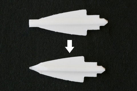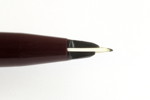 そして、これぞ万年筆という加工としては、その先端に目にも見えないくらいのサイズのスリットを入れる。万年筆のペン先には「切り割り」というスリットがあるが、「プラマン」でもまさにそれを取り入れているのだ。