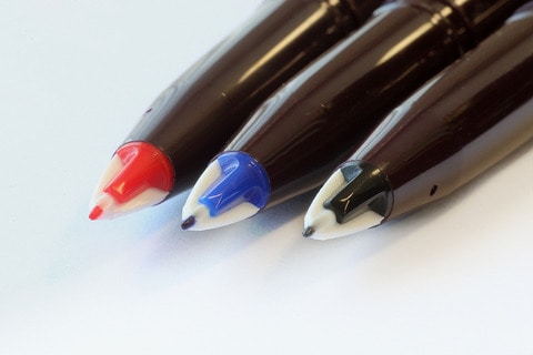 このペンの最大の特徴でもあるペン先を外からでも見えるようにするため、そしてインク色を識別するためでもある。