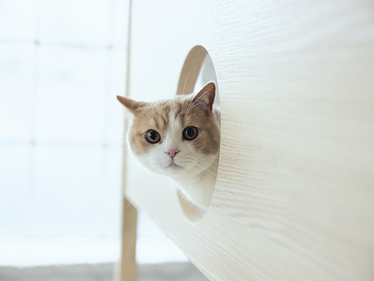 丸い穴からネコちゃんがひょっこり顔をだしてくれるかも?!