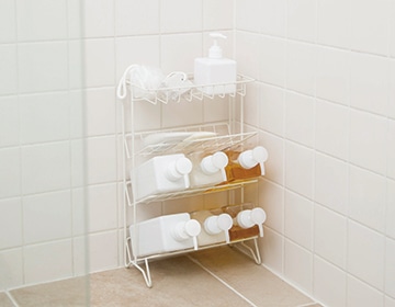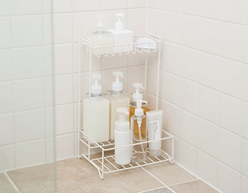 シャンプー、ボディソープなどが整理できるバスラック