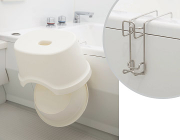 お風呂のいすや湯桶を同時に水切りできるフックです。