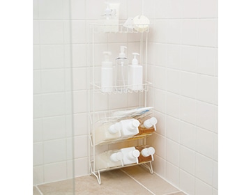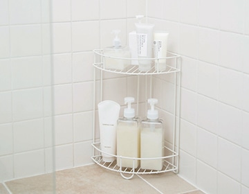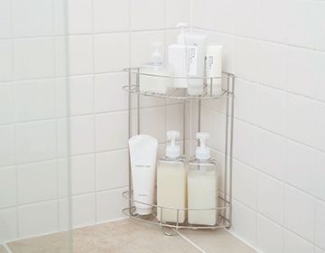 バスルームのコーナーやバスカウンター上の収納に。