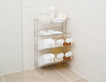 ワンルームなども収納の少ないユニットバス用のボトルラックとしても使えます。