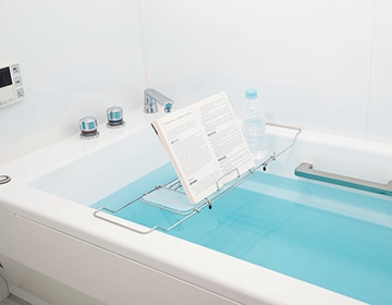 お風呂に浸かりながら、雑誌や小説を読んだり、スマホやタブレットを置いて音楽・映画鑑賞をしたり、ワインを飲みながらの入浴も!