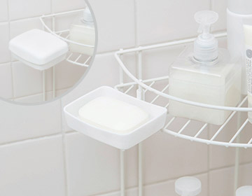 コーナーラックなどに取り付けもでき、単独でも石けん皿として使えます。