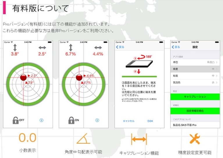 余計な機能がなく、シンプルで使いやすい水平器アプリ。