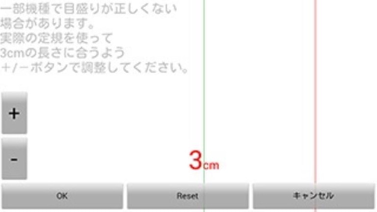 ※実際の定規の3cmと端末の3cmを合わせて調整をお願いします。