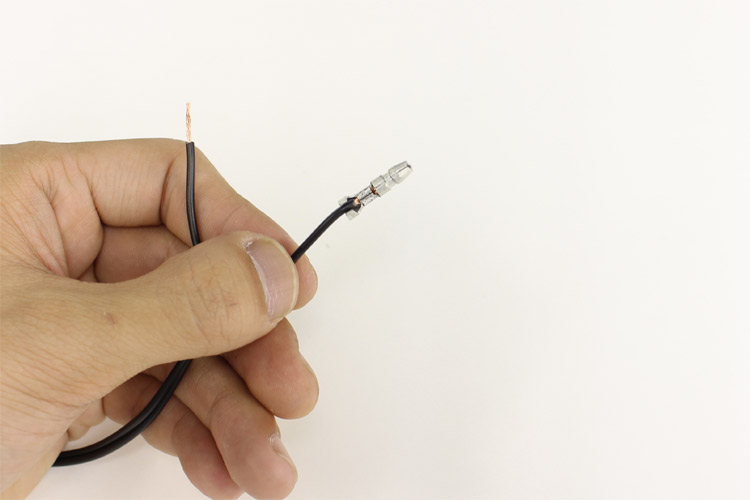 ※端子をかしめた後だと、通らないので根元部分にかぶせることができません。