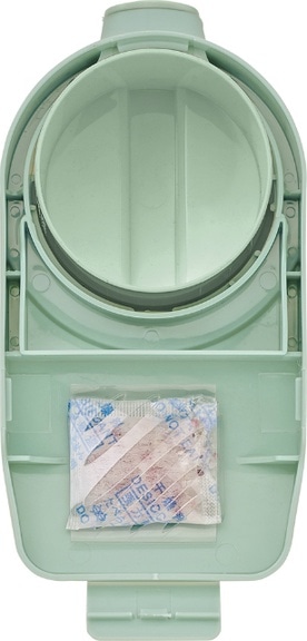 ②除湿剤はフタ裏にペタッと貼付け簡単。