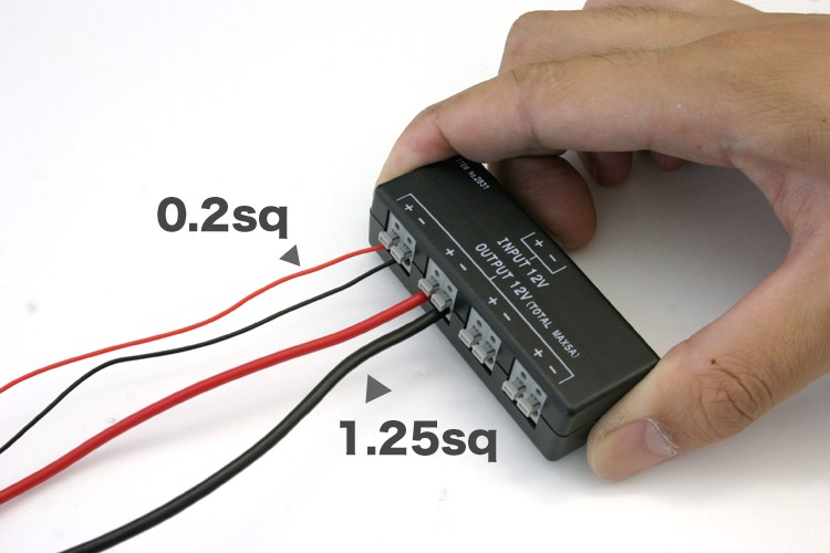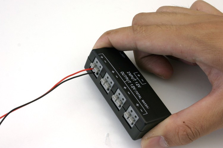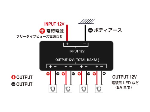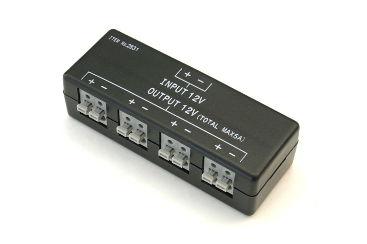 使用可能電流 5A(5000mA)以下でLED等の電源を4分岐できます。