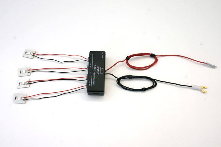 写真のように、電源と電装品(LED)のプラス・マイナスを接続すれば完成です。