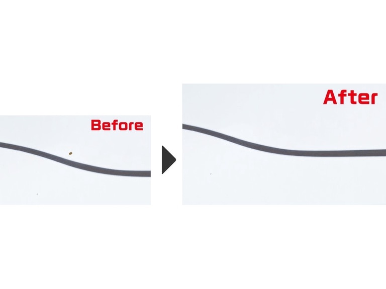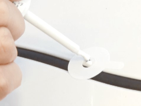 カラータッチをよく振り、キズに点を打つように約30分間隔でペイントが盛り上がるまで重ね塗りしましょう。30分後、マスキングシールをはがします。