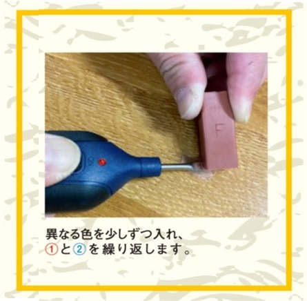 異なる色を少しずつ入れ、①と②を繰り返します。