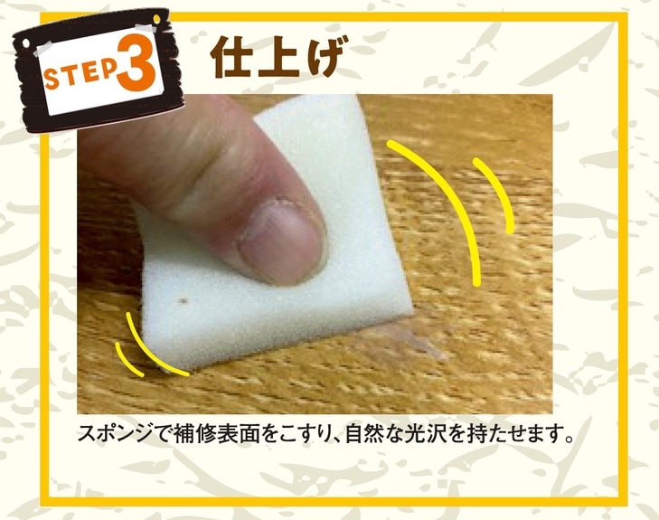 スポンジで補修表面をこすり、自然な光沢を持たせます。