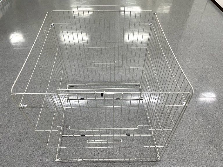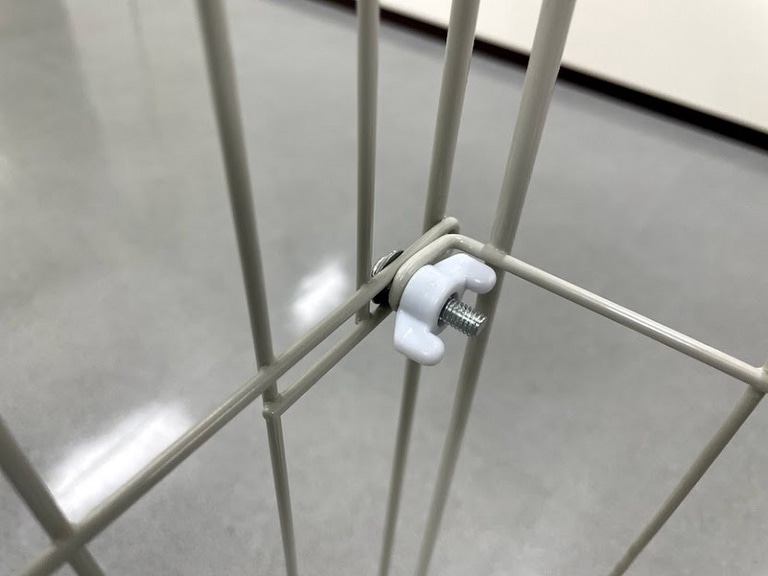② ①の上から外枠をかぶせて、固定金具を外枠の下の線材にひっかけます。