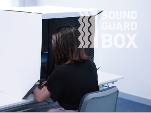 「サウンドガードBOX」は、新しい働く環境作りがカンタンにできる、デスクトップ防音に特化して開発された当社オリジナルの商品です。