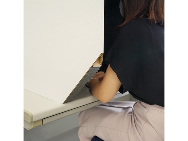 ⑤左面を展開し、天面と左面をマジックテープで固定します。