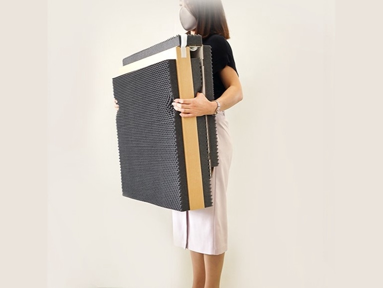 ダンボールを使用している理由は軽くて頑丈、コンパクトに折り畳めて加工性が高い、そしてエコな材質であること。