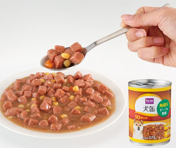 ワンちゃんが大好きなビーフがたっぷり入った犬缶です。