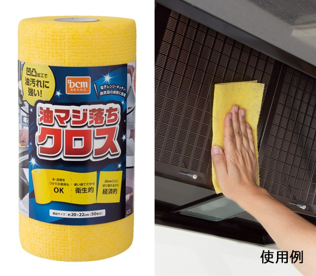 表面の凹凸加工がキッチンスポンジで取れにくい油汚れも、しっかり落とすことができます。20cmごとにミシン目が入っているので使いたい分だけ切り取って無駄なくお掃除ができます。キッチン・電子レンジ・換気扇のお掃除にオススメです。