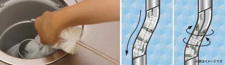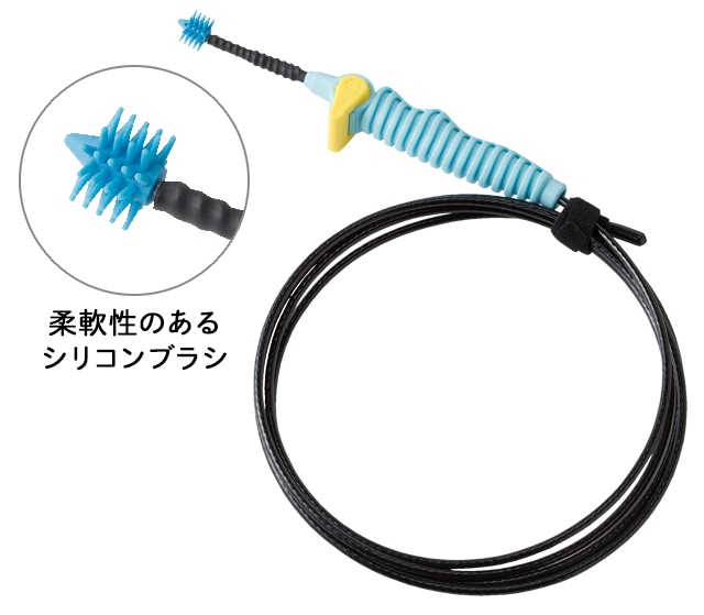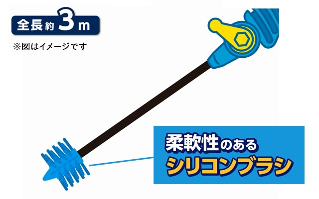 パイプのもっと奥のお掃除には全長約3mのブラシがオススメ。柔軟性のあるシリコンブラシなので、傷をつけずに排水管の奥の奥まで届きます。