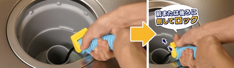 パイプの奥の方のお掃除にピッタリ!キッチンシンクの詰まり予防にオススメのパイプクリーナーです。水道の水をゆっくり流しながら、排水口にワイヤーをゆっくりと押し込み、つまりの原因に突き当たり進まなくなったら、グリップ部分のストッパーを固定してそのままブラシを上下に動かしたり、回転させたりして汚れを取り除きます。