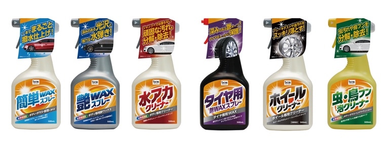 車全体に使えるWAXスプレーをはじめ、頑固な水アカやタイヤ、ホイールなど、部分的な用途に使えるクリーナーもございます。