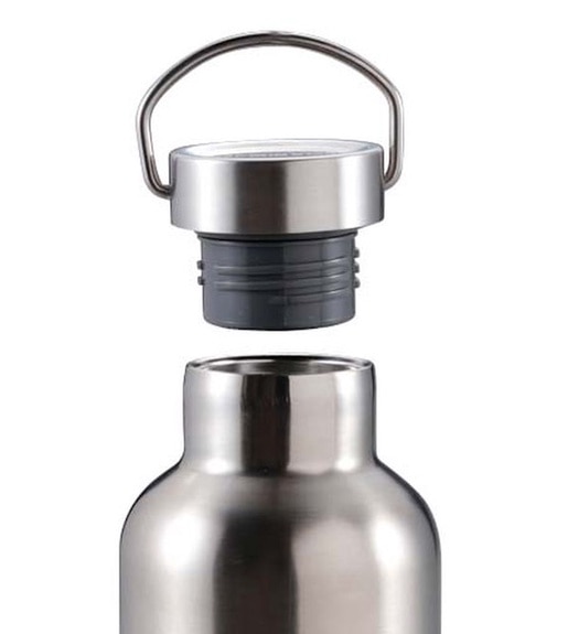 真空二重構造で保温・保冷可能なステンレスボトルです。取り扱いが簡単なスクリュー栓で、持ち運びに便利なハンドル付き。