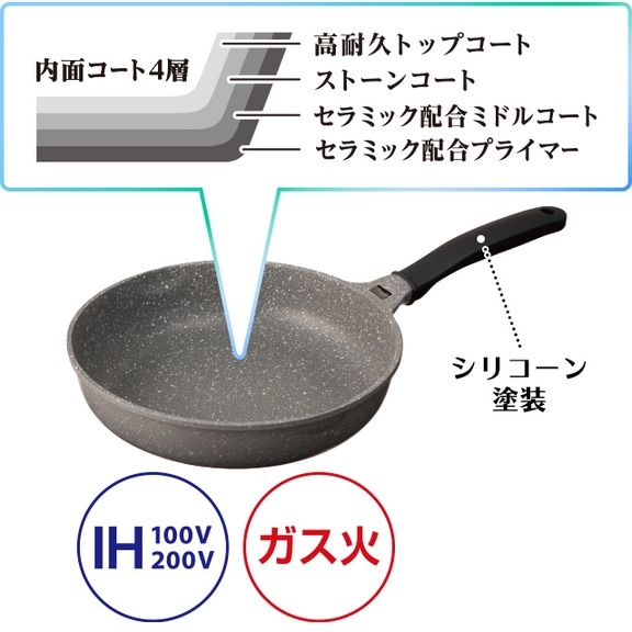 セラミック配合でこびりつきにくく長持ちするフライパン