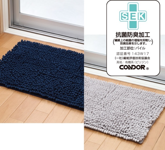 パイル部分がSEKマーク取得済みの抗菌防臭加工になっています。 抗菌防臭効果が長続きするため、いつでも清潔にお使いいただけます。