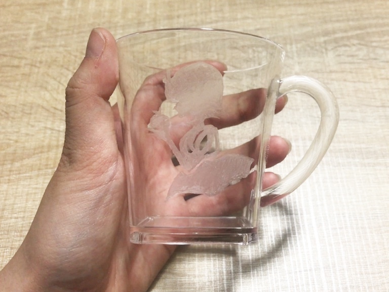 削り残しなどがないか確認して、OKであれば下絵をプラスチックコップから外して完成です!