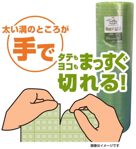 緩衝材の粒の1つ1つが四角いので、その間の太い溝に沿って手でまっすぐ切ることができます。
