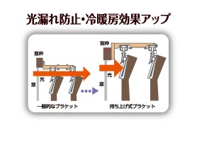 持ち上げブラケットを採用することで、通常のブラケットだと光漏れや冷暖房が逃げてしまう隙間をブロック!