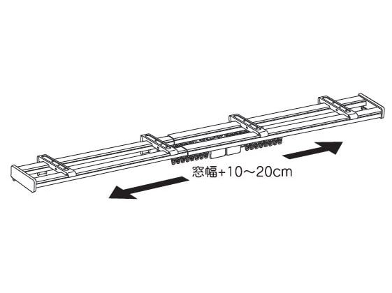①窓に合わせてレールの長さを窓幅より10~20cm長めに調節してください。