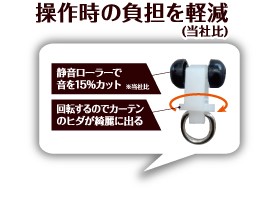 静音ローラーで音を15%カット!(当社比)回転するのでカーテンのヒダがきれいに出ます。