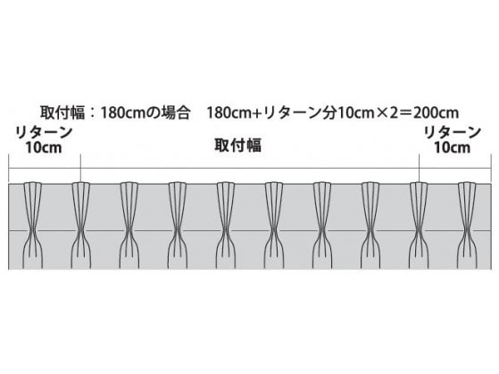 リターン仕様でご使用の場合、カーテンは取付幅+20cm(片側10cm以上)の物をご用意ください。