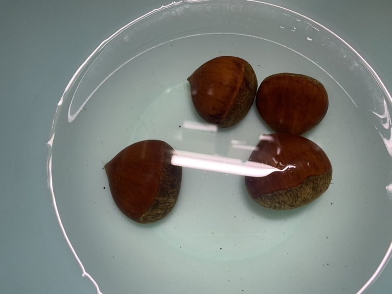 今回は一晩水に浸けた栗をご用意しました!さっそく皮をむいていきましょう。