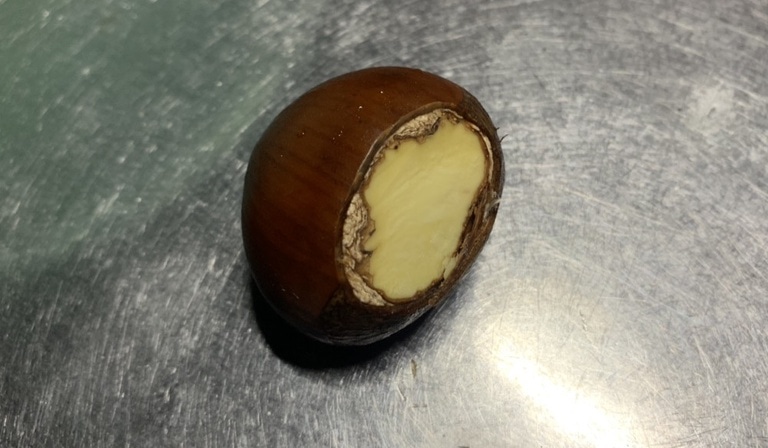 鬼皮がむけると画像のように渋皮が残った状態となります。渋皮煮であればこのまま使っても問題ありません。
