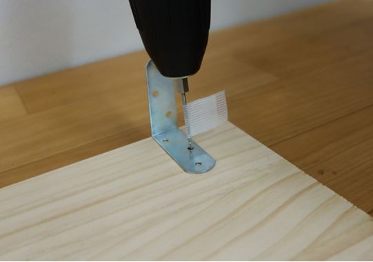 ①:棚板にL字金具を取り付けます。