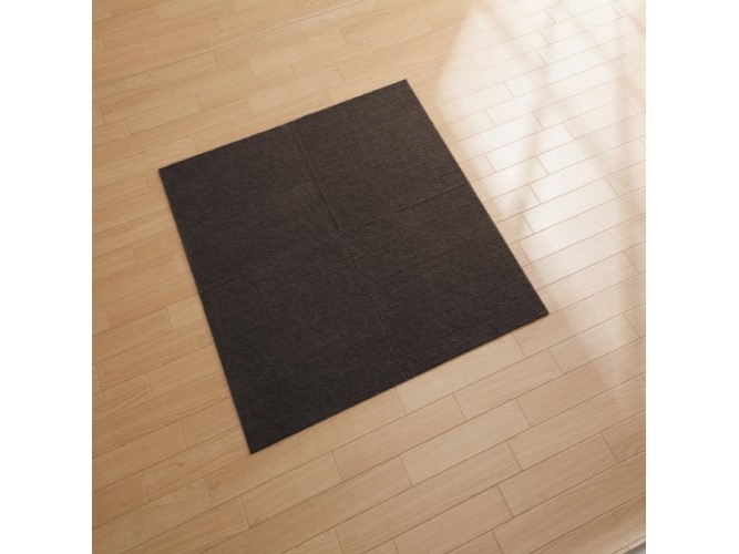商品サイズ:(約)45x45cm(4枚入)。材料表示:表面/ポリエステル100%、裏面/アクリル樹脂100%。カラー:ブラウン。汚れた所だけ洗濯・交換できる。フィルムをはがして使用ズレにくい!掃除機を使用してもめくれない。