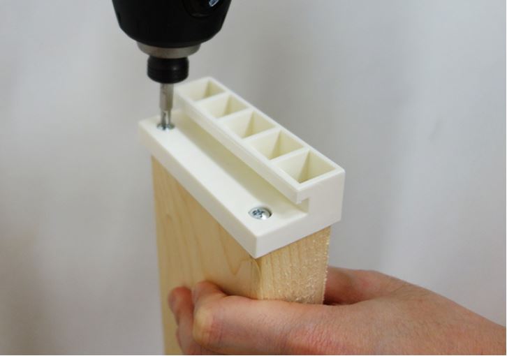 2×4材にそれぞれ取付していきます。アジャスターは上からはめるだけですぐに取り付けできますし、ジョイントもねじで固定するだけなので簡単に取り付けることができます。